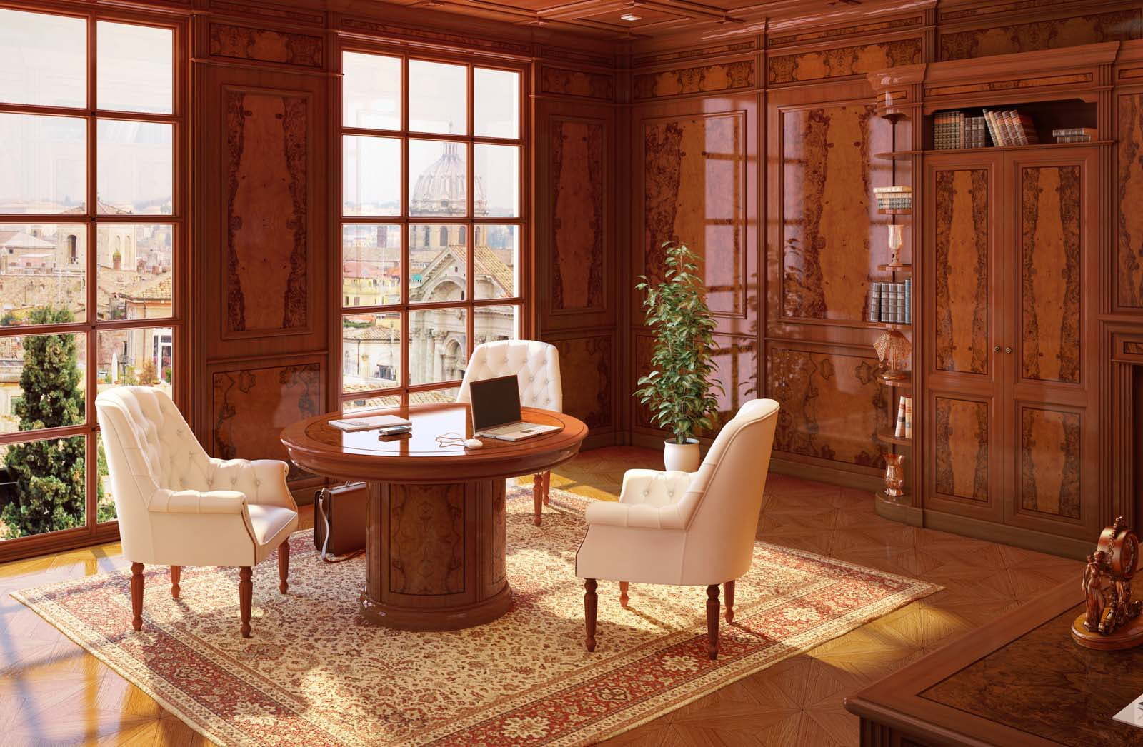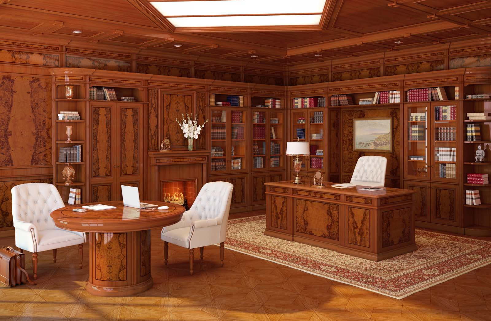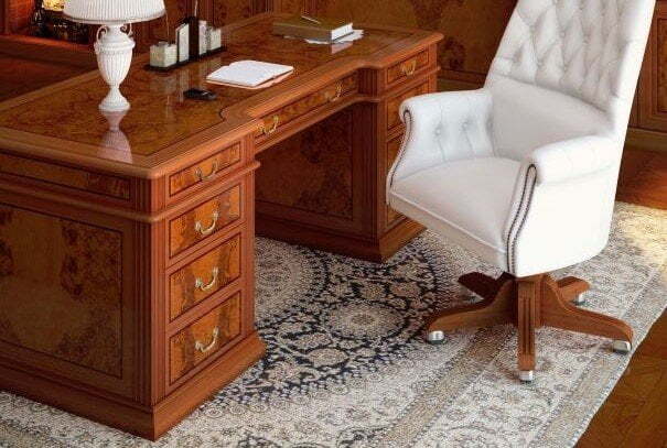 Для получения янтарных оттенков коллекций производитель использует шпон оливковых деревьев, подбирая необычный естественный рисунок древесины. Порода удачно сочетается с массивом бука, МДФ, кожей. В представленных комплектах кабинета руководителя вы найдете столы, кресла, шкафы и другие элементы обстановки.