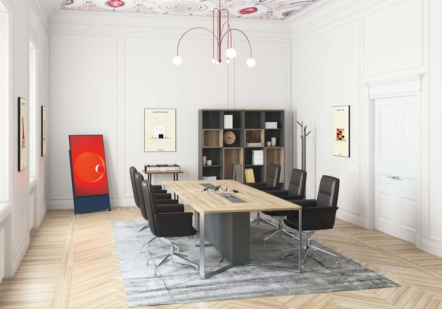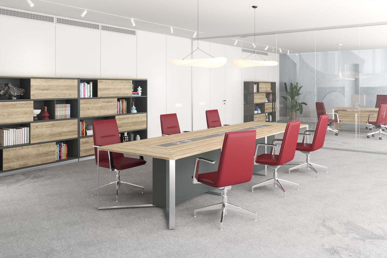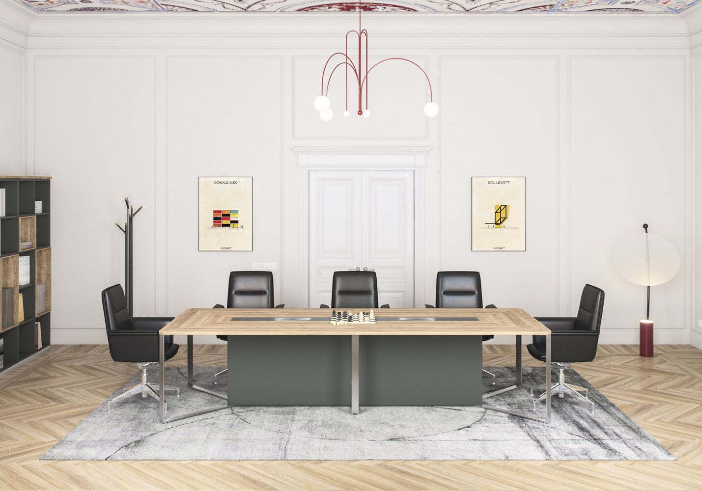 Коллекция "Speech" почти целиком состоит из столов, основание которых - L-образный металлокаркас, соединение деталей металлокаркаса и столешниц происходит благодаря винтовой стяжке, в свою очередь соединение с тумбой происходит при помощи эксцентриковой стяжки. Серия предназначена для организации модульных переговорных столов на металлических опорах. Модульная конструкция позволяет создать переговорную зону на необходимое количество мест.Производится из ЛСПД, кромка ПВХ толщиной 2 мм.