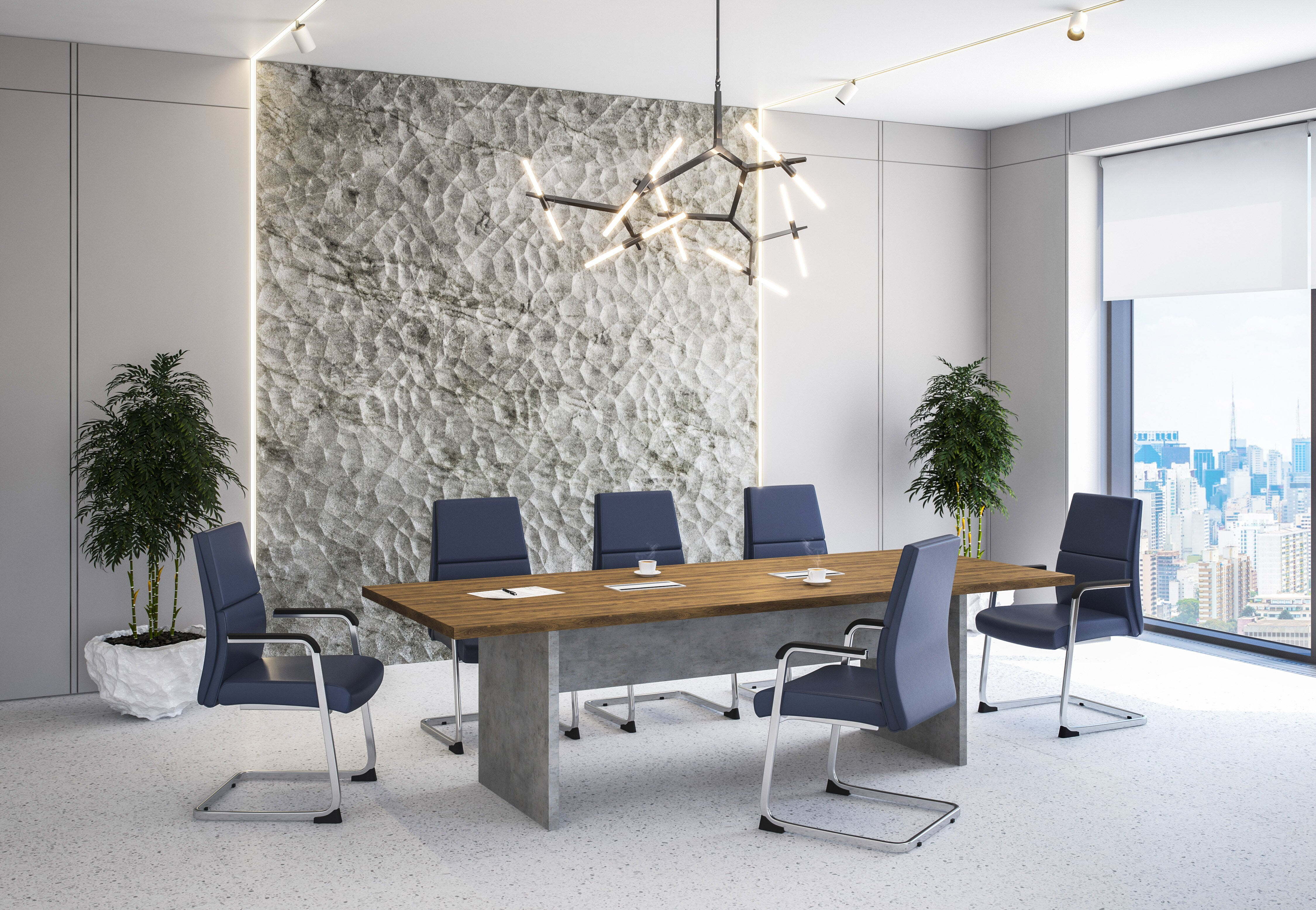 Кабинет отличается сочетанием инновационных декоров под бетон и древесину.