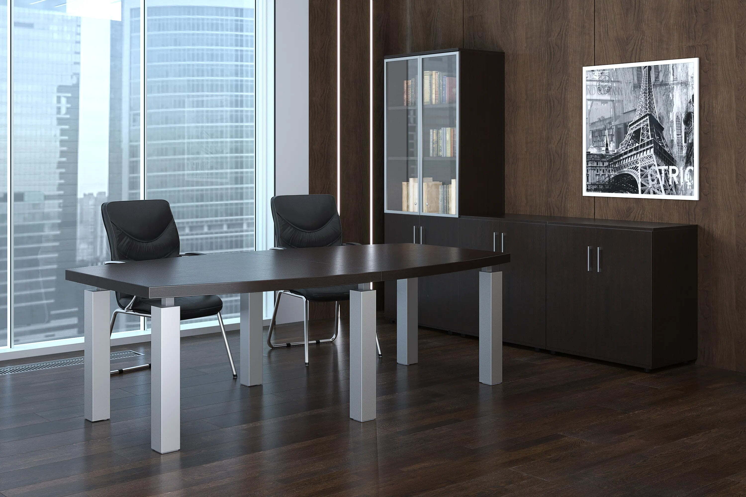 Коллекция мебели Blackwood – это воплощение современного стиля и роскоши для кабинета руководителя. Каждое изделие в этой линейке притягивает взгляды своим оригинальным дизайном, в котором металлические кронштейны элегантно соединяют столешницу с основанием стола. Инновационное решение обеспечивает не только уникальный визуальный акцент, но и комфорт благодаря легко регулируемым опорам столов. Ассортимент кабинетов Blackwood Орех предлагает широкий выбор конфигураций, позволяя обустроить офис в соответствии с любыми требованиями и предпочтениями. Глубокий, насыщенный цвет ореха подчеркнет благородство и статус вашей рабочей среды, создавая атмосферу уверенности и профессионализма.