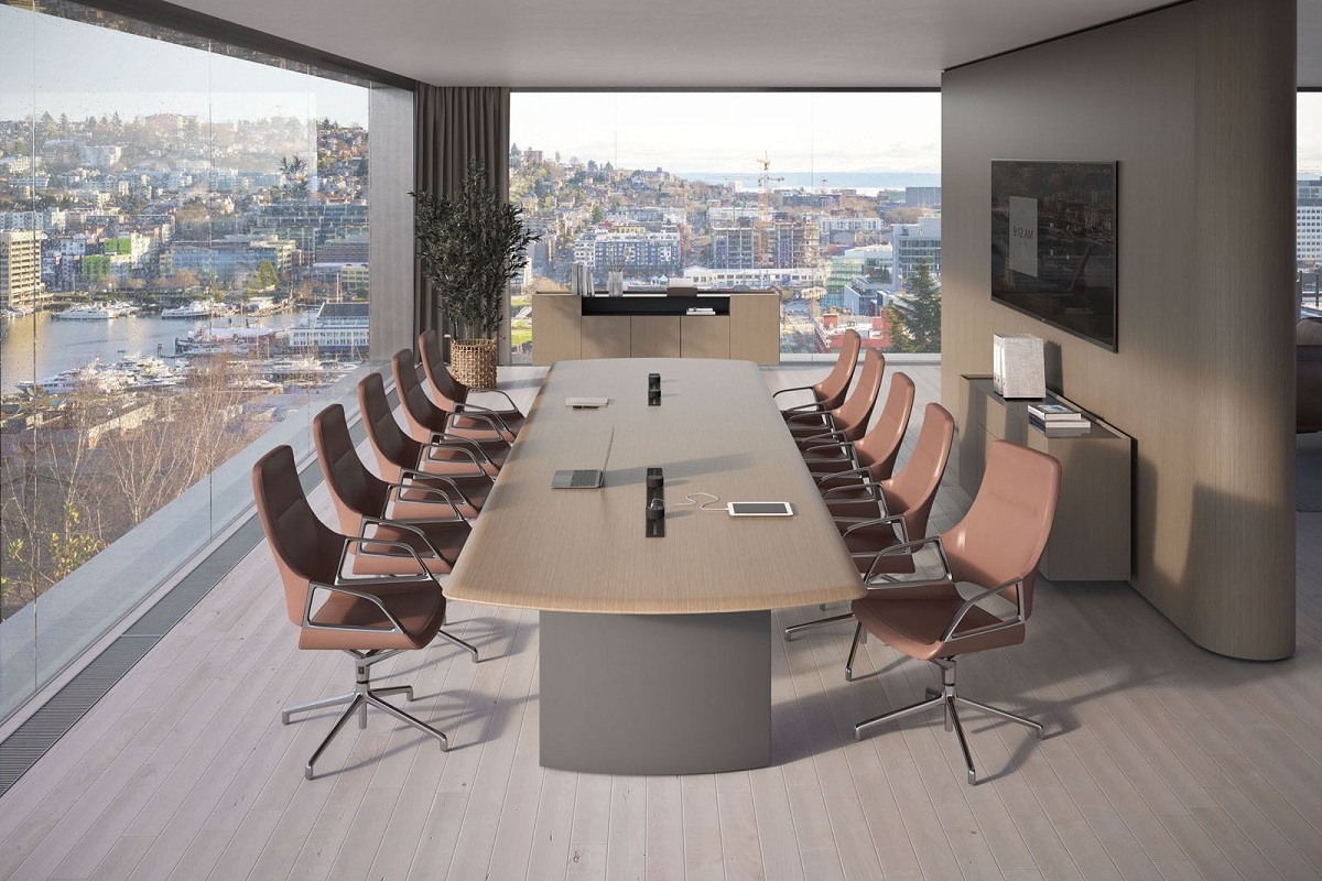 Мебель для переговоров Foster — это идеальное решение для создания комфортной и динамичной переговорной зоны. Центральным элементом коллекции является стол переговоров, столешница которого выполнена в виде крыла со скошенным на 45 градусов краем. Эта дизайнерская особенность придаёт динамизм рабочим процессам и помогает создать атмосферу для продуктивных встреч. Воспользовавшись шпоном "Серебристый жемчуг", мебель не только впечатляет своим элегантным внешним видом, но и отличается высоким качеством исполнения. Богатый выбор предметов и разнообразие их комбинаций делают эту коллекцию незаменимой для оформления офиса премиального уровня.