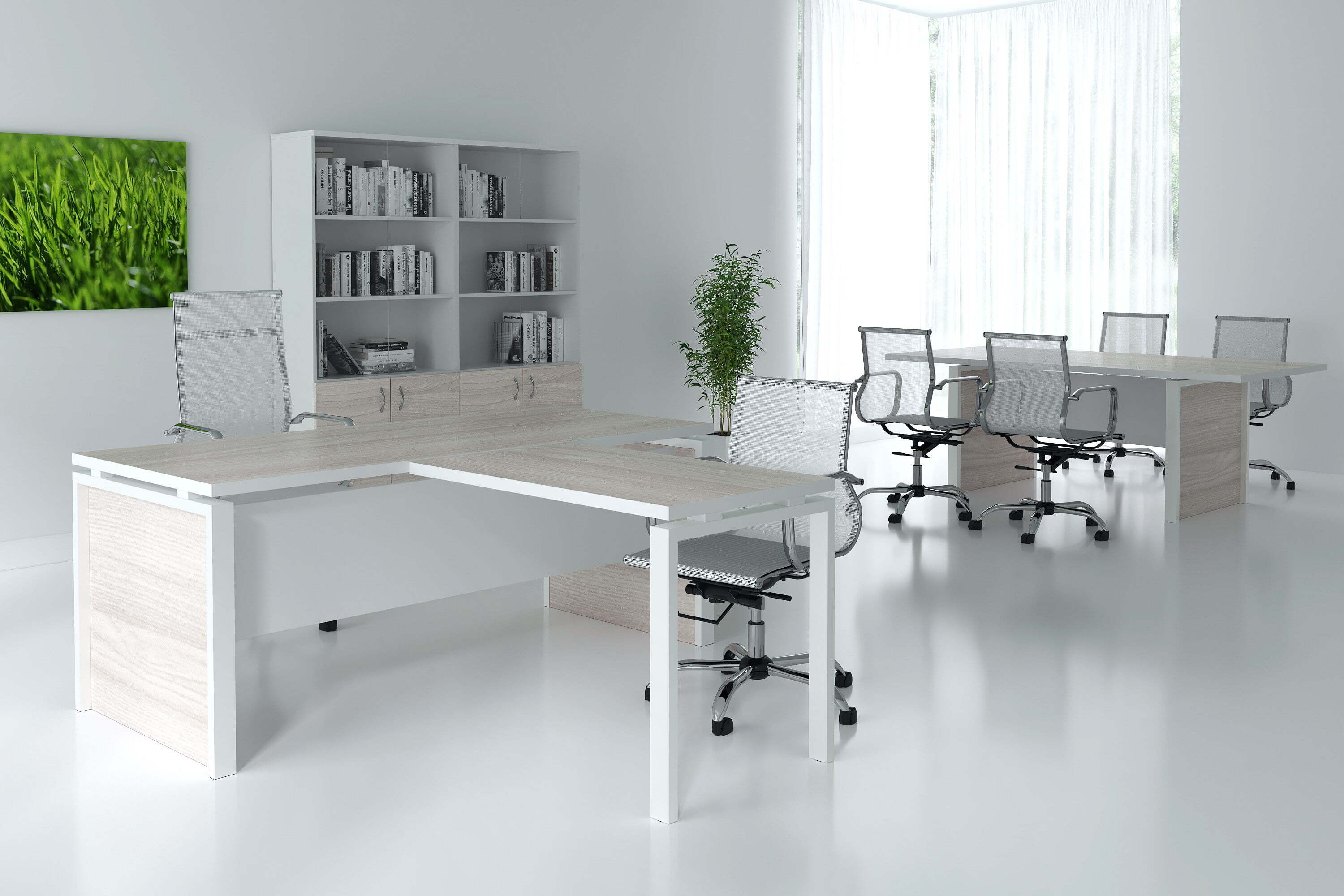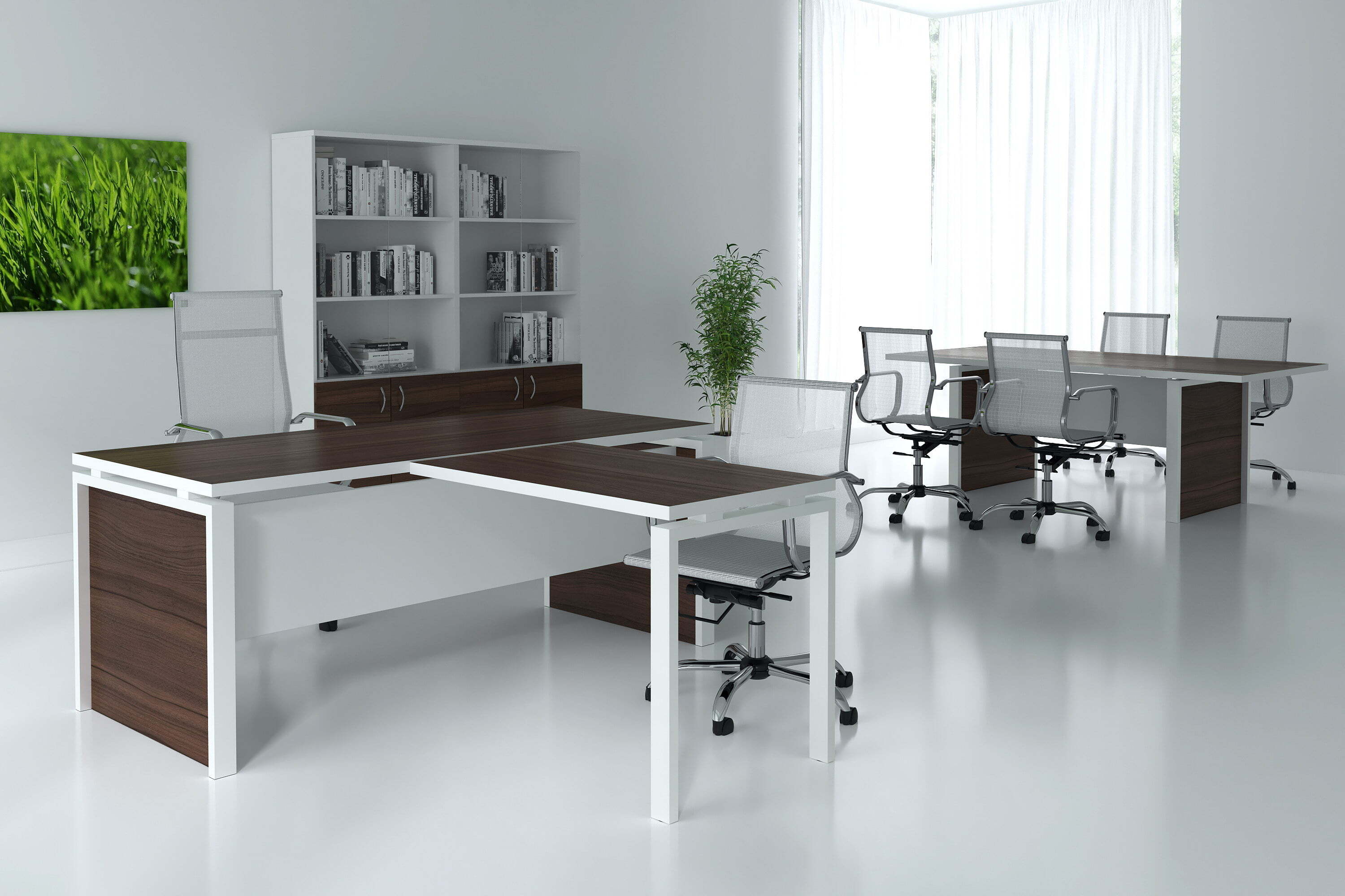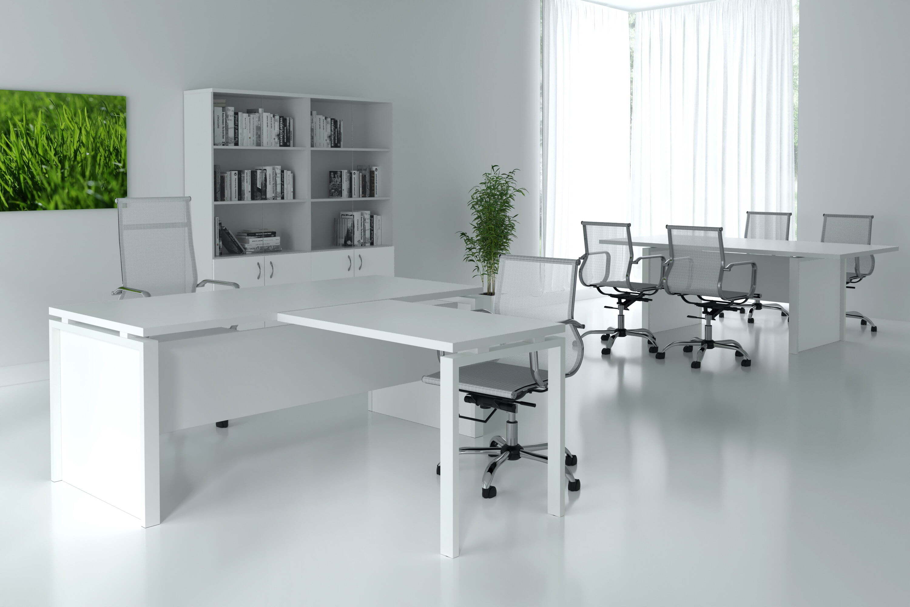Мебель для переговоров Steel Evo представляет собой эталон современного стиля и функциональности. Элегантные линии, строгий внешний вид и высококачественные материалы делают этот комплект идеальным выбором для современных деловых пространств. Столешницы столов выполнены из ЛДСП толщиной 32 мм, что обеспечивает прочность и долговечность. Такой подход к дизайну и функциональности демонстрирует, что Steel Evo не только стильная, но и практичная мебель, которая прекрасно впишется в любой офисный интерьер и создаст комфортную атмосферу для продуктивных переговоров.