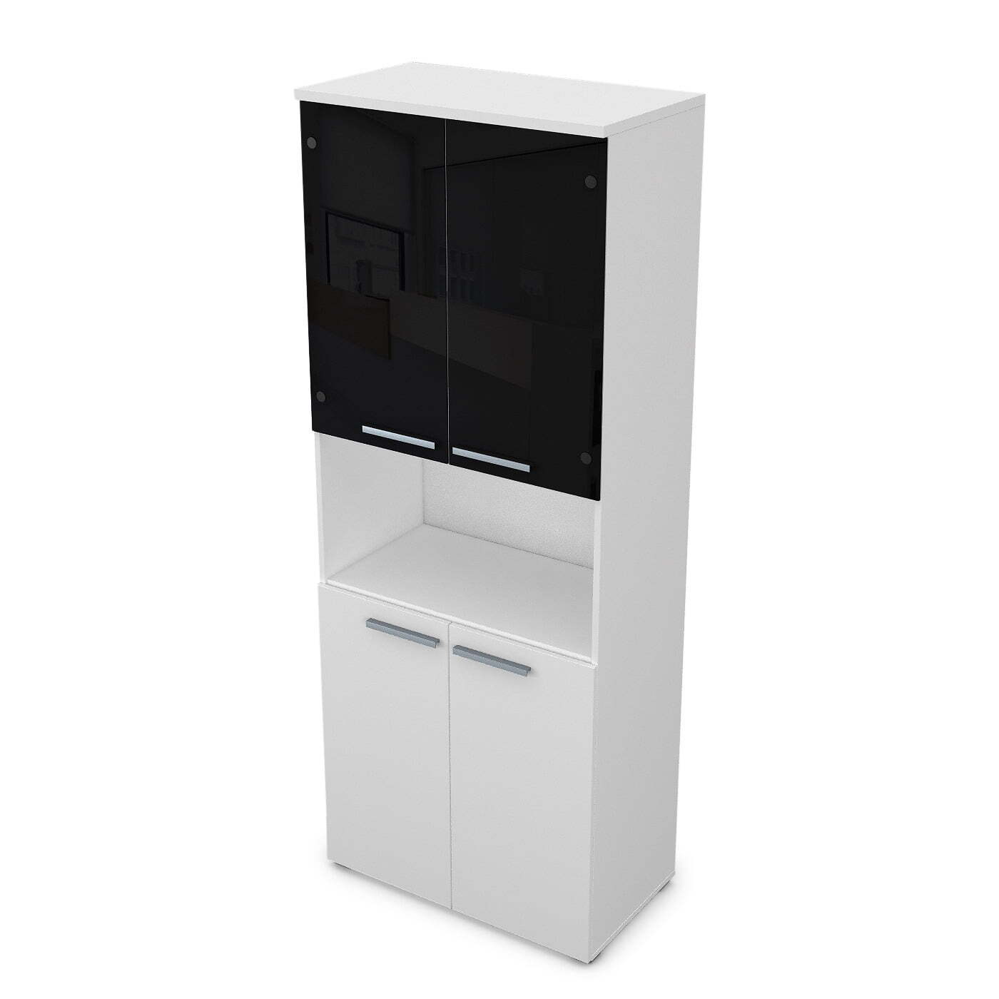 Этот высокий шкаф со стеклом и нишей отлично подойдет для офисной мебели. Он имеет стильный глянцевый белый цвет и прочную конструкцию. Шкаф имеет две двери со стеклянными панелями и одну нишу для хранения. Размеры шкафа составляют 800x450x2045 мм, что делает его очень практичным и удобным. Этот шкаф будет прекрасным дополнением к любому офису.