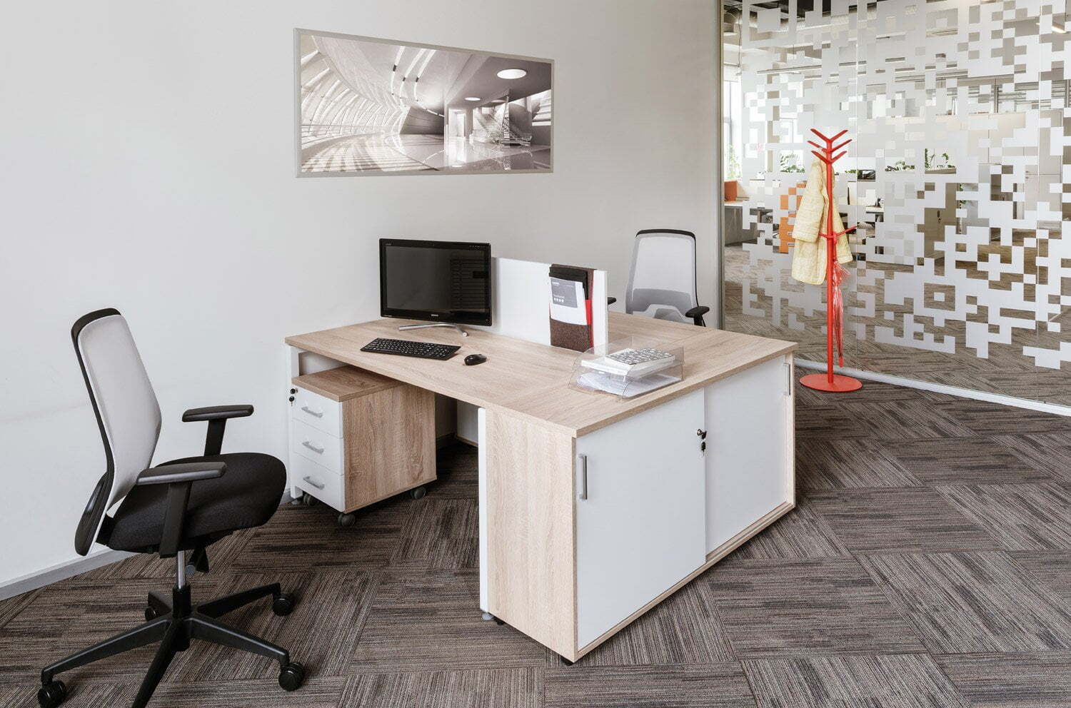 Современная мебельная коллекция Tour Light — прекрасный выбор для оформления рабочих мест сотрудников в теплых оттенках калифорнийского дуба. Стандартные белые опоры придают офису лёгкость и воздушность, а опоры в цветах антрацит или серебристый создают интересные цветовые акценты, придавая помещению современный вид. Коллекция Tour Light отличается высоким качеством исполнения, эргономичностью рабочих мест и широкими возможностями для комбинирования. Это решение, которое сочетает в себе стиль, удобство и функциональность, делая ваш офис более комфортным и привлекательным для сотрудников.