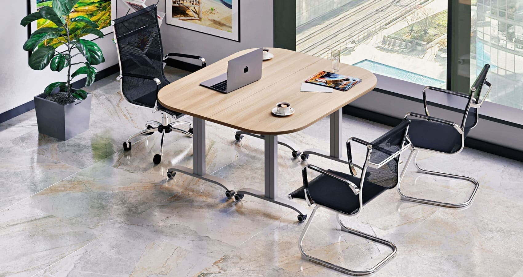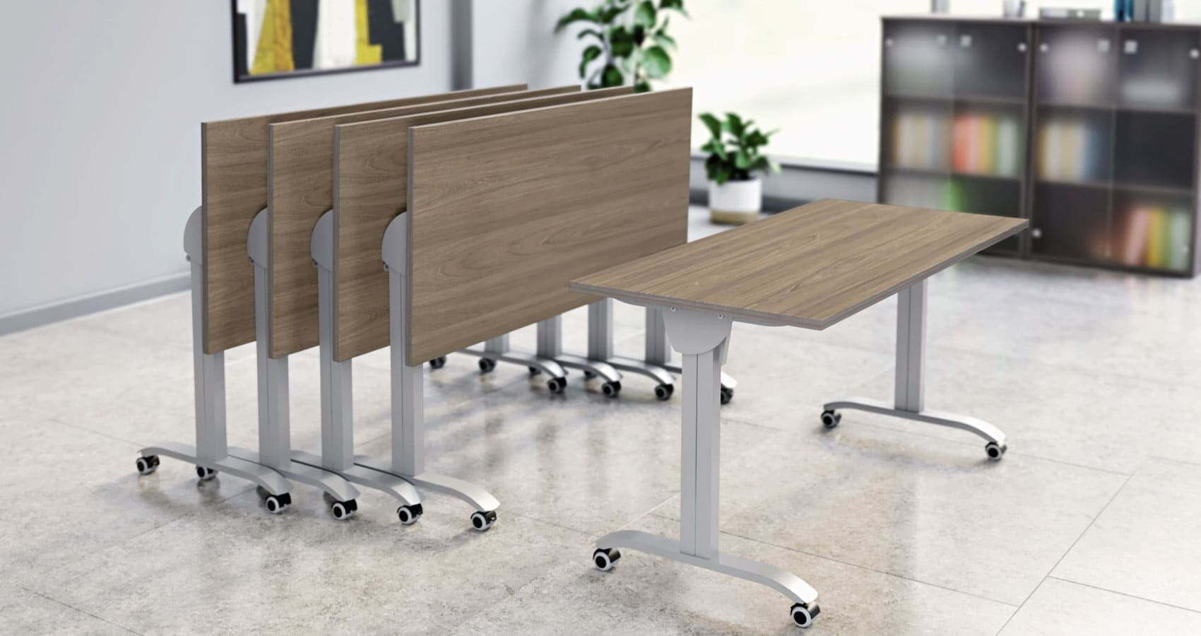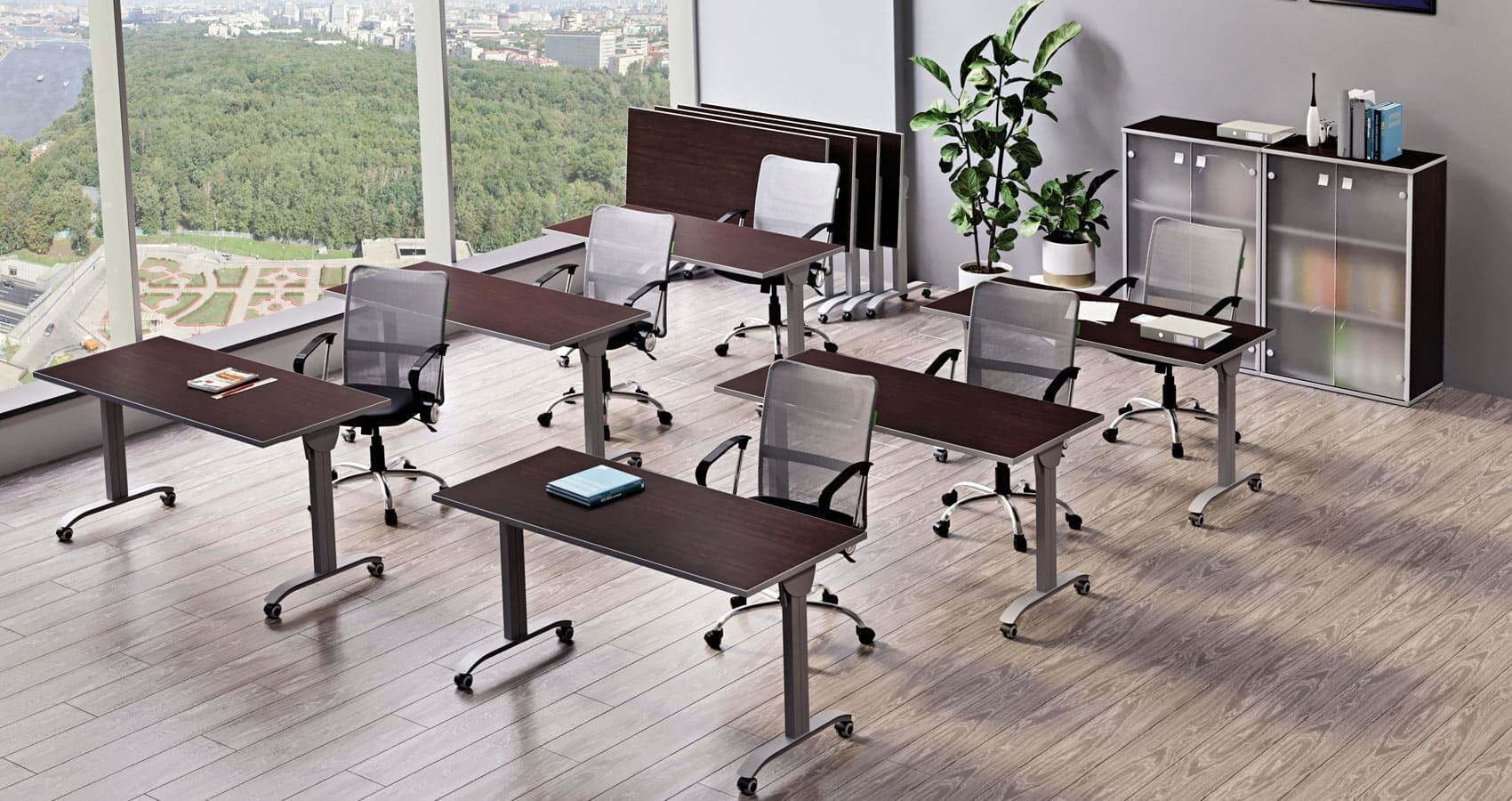 Коллекция "Mobile System" целиком состоит из столов. Конструкция металлокаркаса состоит из боковых опор с шарнирами. Для защиты рук в процессе эксплуатации все каркасы комплектуются декоративными накладками - "шторками". Механический фиксатор позволяет надежно закрепить столешницу в горизонтальном и вертикальном положении.Материал используемый при производстве ЛДСП, толщина столешницы 22 мм, материал кромки ПВХ, толщина кромки 2 мм.